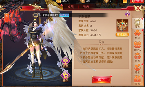 家族系统永远是所有游戏的一大亮点之一,《战国之道》的也不例外,家族系统为玩家提供了一个结识新朋友的平台。玩家达到一定的等级之后,就可以进入家族与一群志同道合的小伙伴一起游戏,还能获得丰厚的家族福利。进入家族后我们可以看到家族福利界面的众多福利内容,包括家族签到奖励,完成帮会任务后获得的家族工资,家族成员捐献家族后领取宝箱的家族金库,家族系统能加强家族成员的凝聚力,为之后更加有趣的家族战、国战等玩法打下基础。